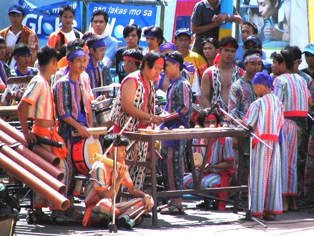 Mediums: Drums, bamboo instruments, woven textiles, carved stone, church bells, colorful costumes.