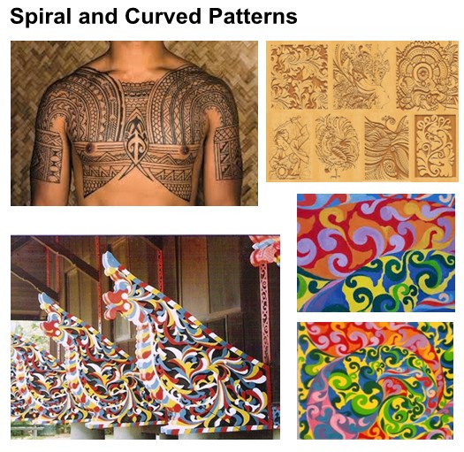 3. Spiral and Curved Patterns – Seen in tattoos (batok) and in okir designs of the Maranao.